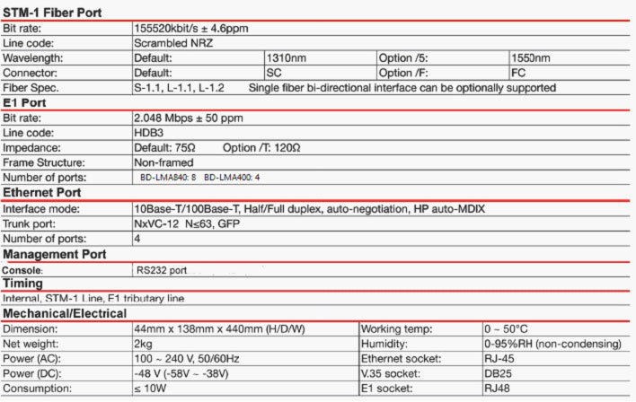 As a key member of Baudcom “MetroEdge-Express” SDH/MSPP Product family, BD-STM1-4FE8E1 is a carrier-class, cost-effective, compact (only 1U high) SDH/MSPP platform that is designed for