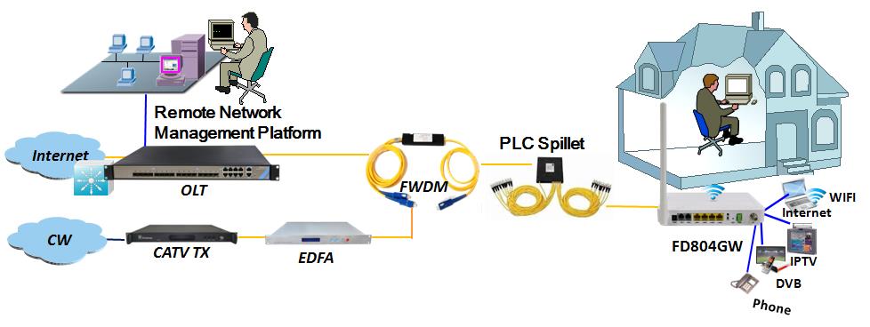 WDM technology with downlink wavelength 1490nm, uplink wavelength 1310nm .It